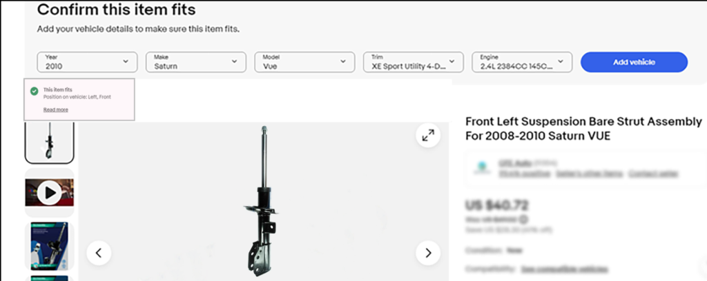 适用性信息可帮助买家找到适合其车辆的正确产品。